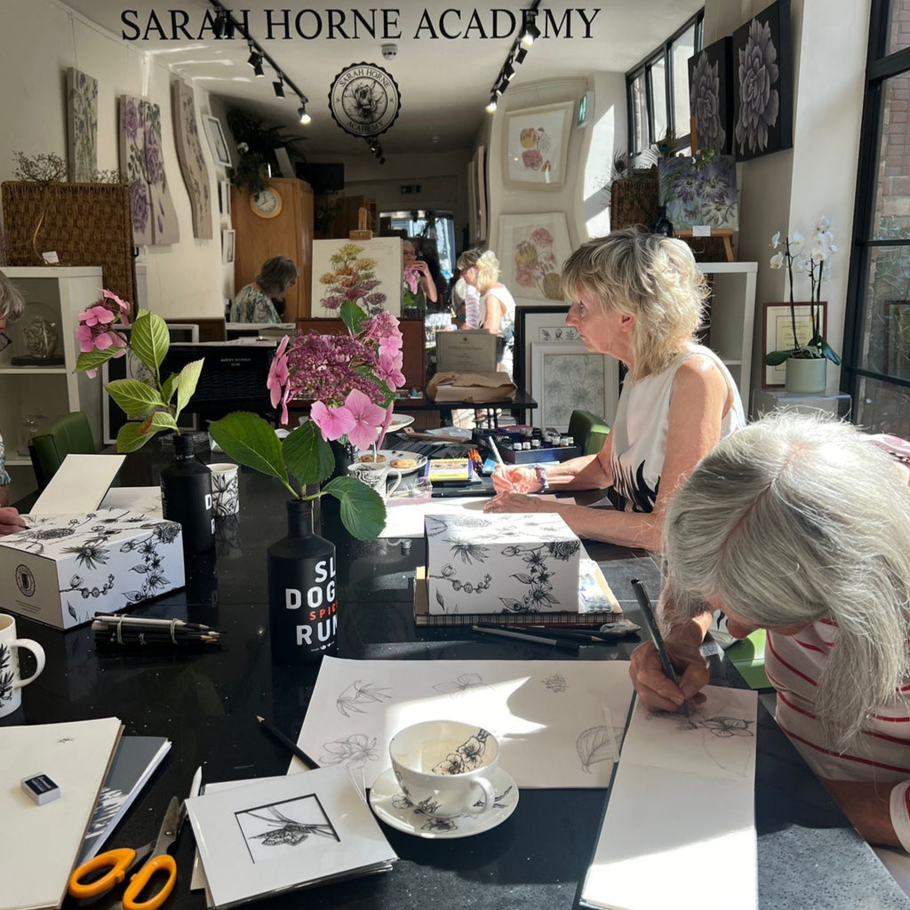 The classes are small and intimate with around 8 places available at each of our exciting flower and art workshops depending on the subject.